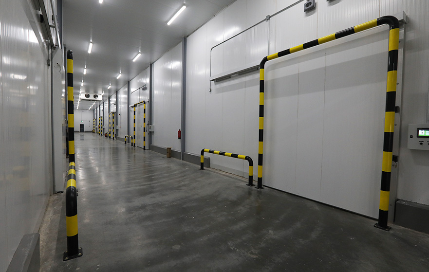 Sliding doors usually delivered as a complete unit, easy to install with all fittings. Rails of the doors is made of salt water resistant material. Door leaf is made of injected sandwich panel and enclosed all around with polyester steel sheet fitted with door locks and handles including rail fittings. Freezer doors could be supplied with heating cables in the frame which secures from gelation and ice formation.